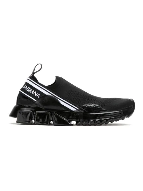 Dolce Gabbana Sorrento Logo Print Stretch Knit Slip On Sneakers Black Dolce Gabbana