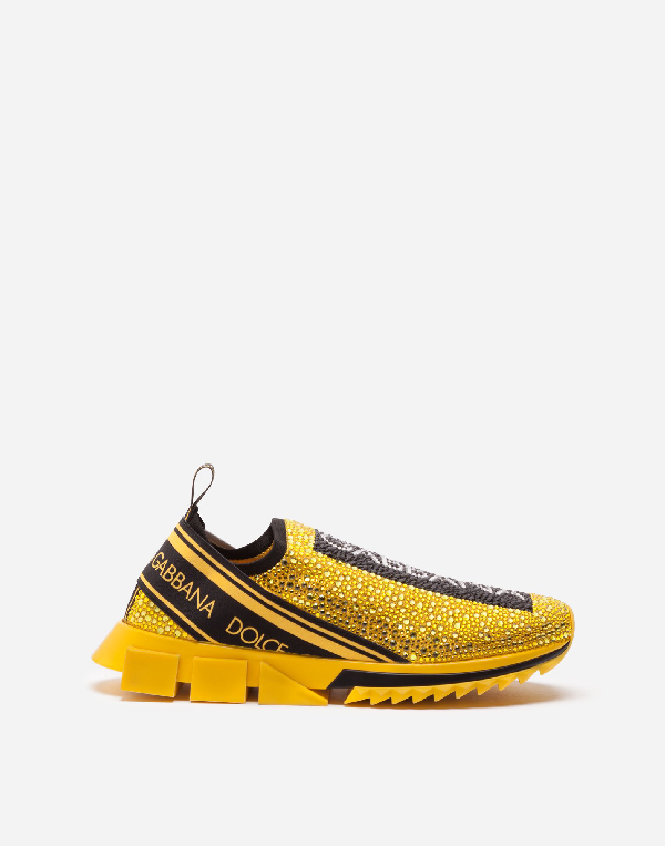 Dolce Gabbana Sorrento Sneakers With Rhinestones In Yellow Modesens