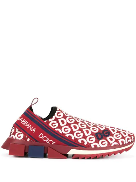 Dolce Gabbana Knit Fabric Sorrento Sneakers With Dg Mania Print In Red Modesens