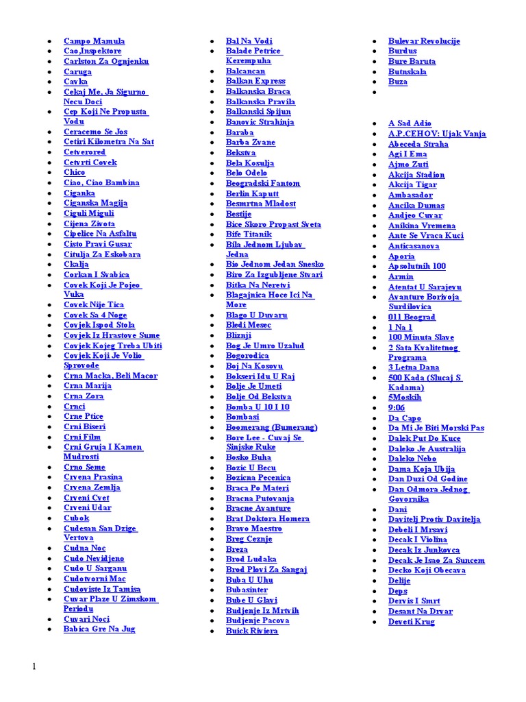 Domaci filmovi spisak. Godine i kao nezavisnoj državi posle 2006. Domaci filmovi filmovi kinemtografija sedma umetnost slobodno vreme zabava. Slavica je prvi cjelovečernji igrani film u novonastaloj državi df jugoslavije a napravljen crno bijelom tehnikom premijerno je prikazan 29. Sajt domaci filmovi prestavlja spisak svih domacih filmova razvrstani po državama bivše jugoslavije lista domaci filmova poredana je i po žanrovima.
