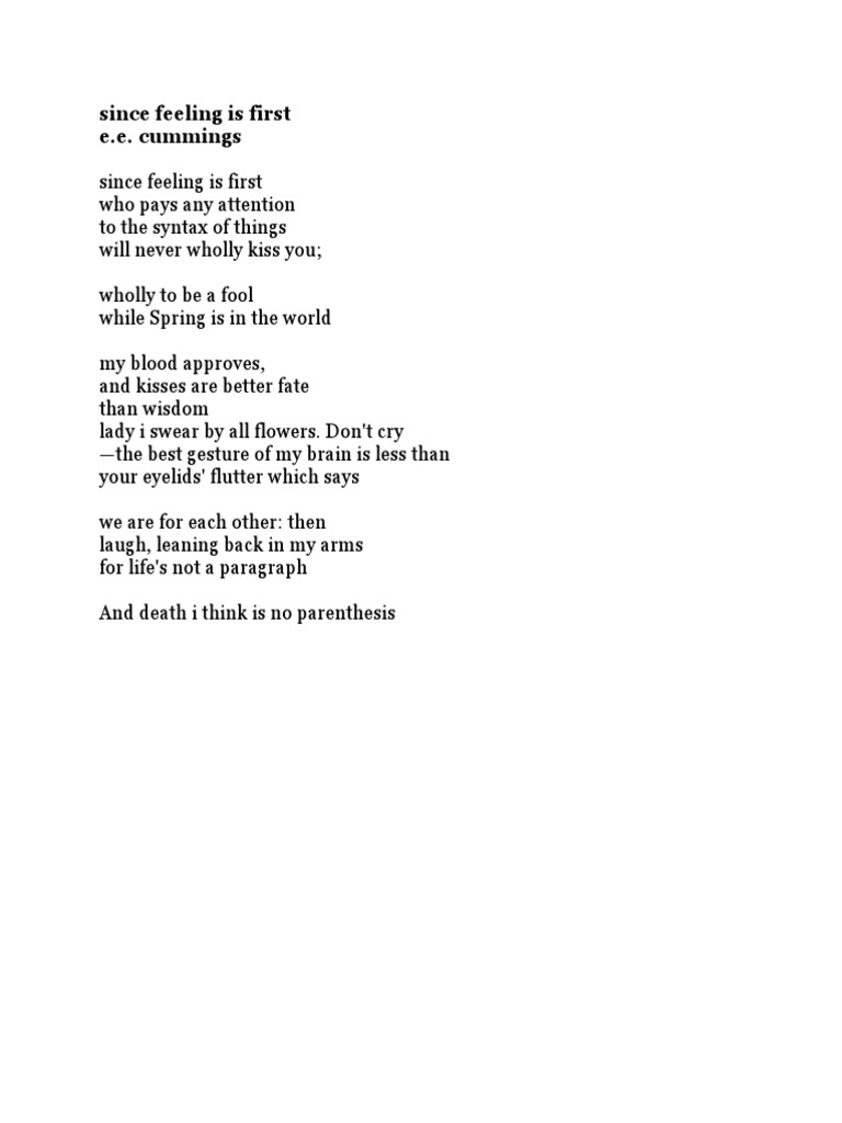 Since Feeling Is First Ee Cummings