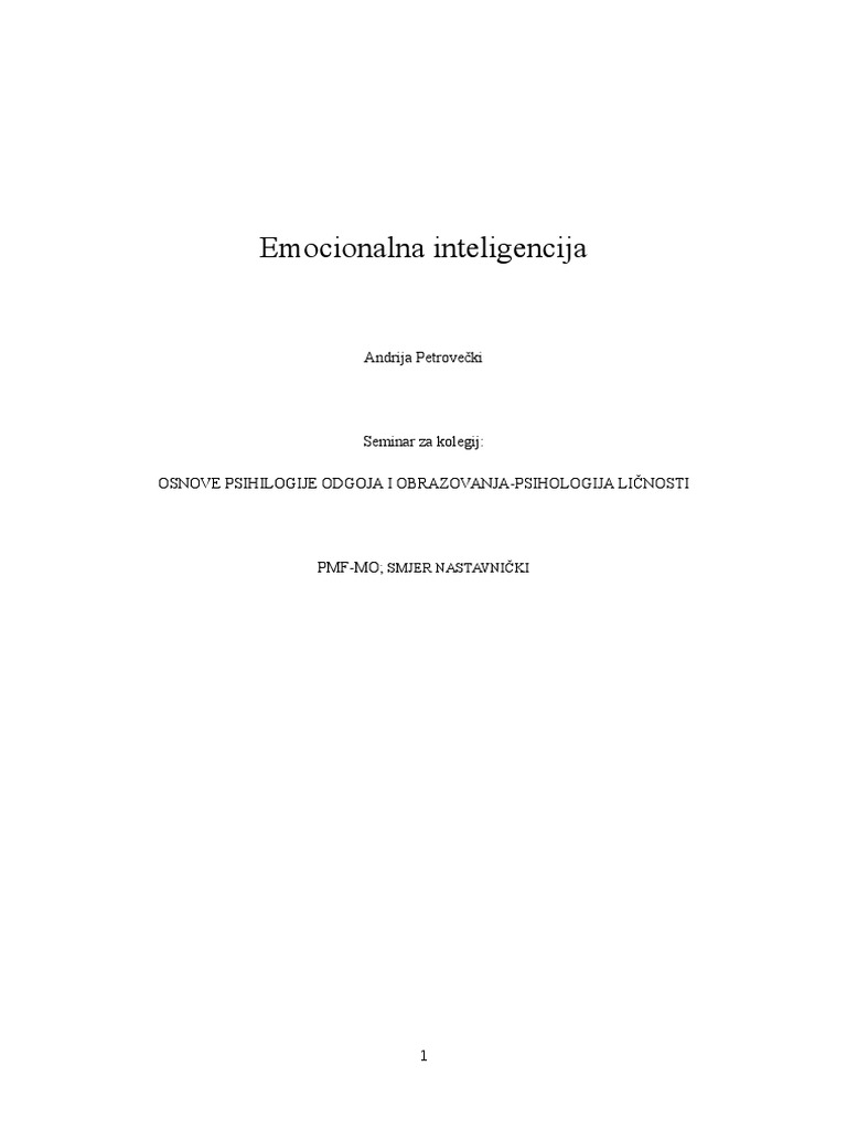 Emocionalna Inteligencija Seminarski Rad Psihologija Docsity