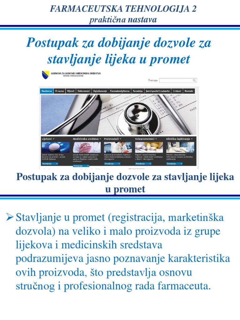 Ft 2 Vjezbe Dozvola Za Stavljanje Lijeka U Promet