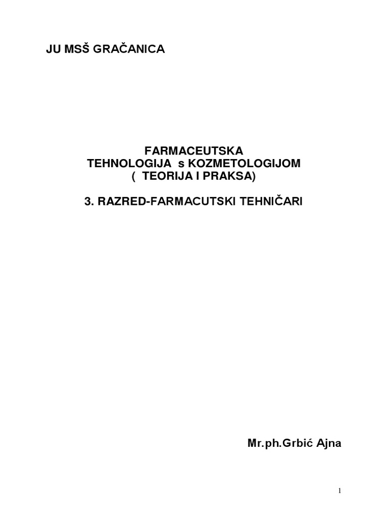 Farmaceutska Tehnologija 3 Za 4 Razred Medicinske Skole Farmaceutski Tehnicar