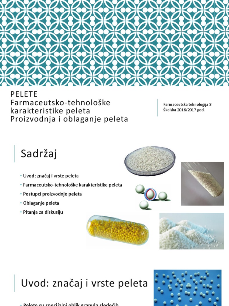 9 Farmaceutsko Tehnoloske Karakteristike Peleta Proizvodnja I Oblaganje