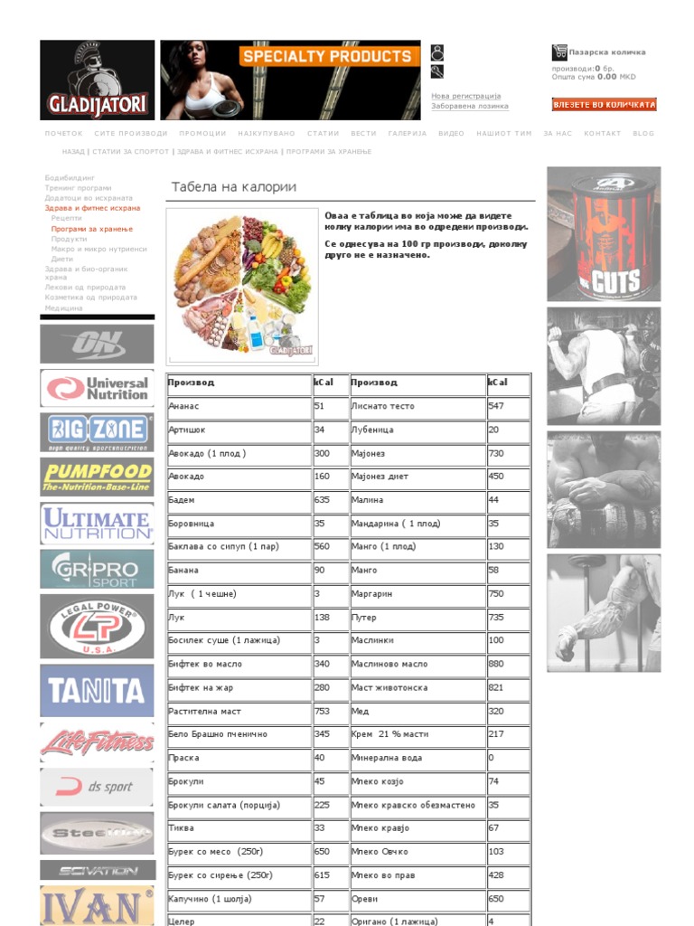 Tabela Na Kalorii Gladijatori