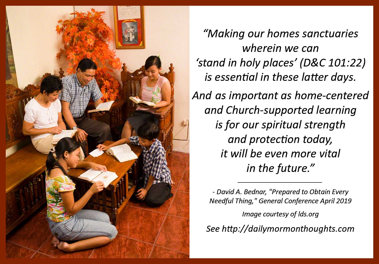 Daily Thought From Modern Prophets Elder David A Bednar On Strengthening Our Homes