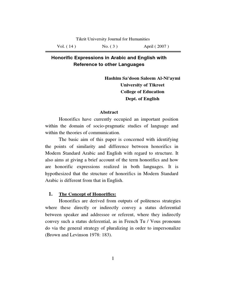 Honorific Expressions In Arabic And English With Reference To Other Languages English Language Japanese Language